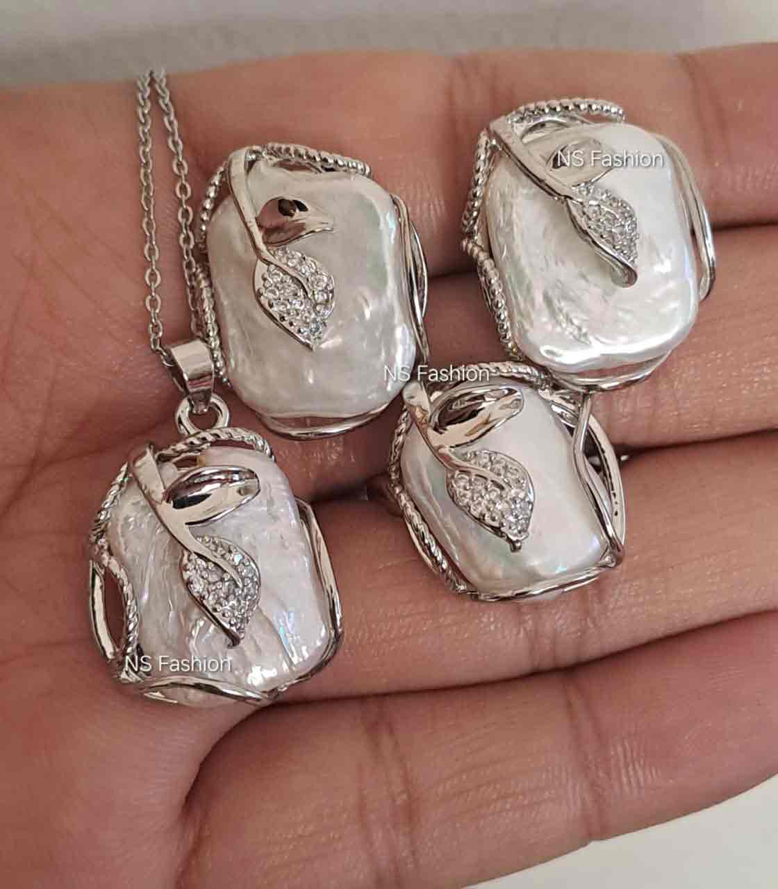 ✅ Timeless and elegant, This Mother Pearl Pendant Set is the epitome of sophistication. Crafted with high-quality AAA-grade pearls, the set includes a beautifully designed pendant with matching earrings and an adjustable Finger ring, making it a perfect piece of jewelry for any Occasion, Celebrations, Gift-Giving, and daily elegance.