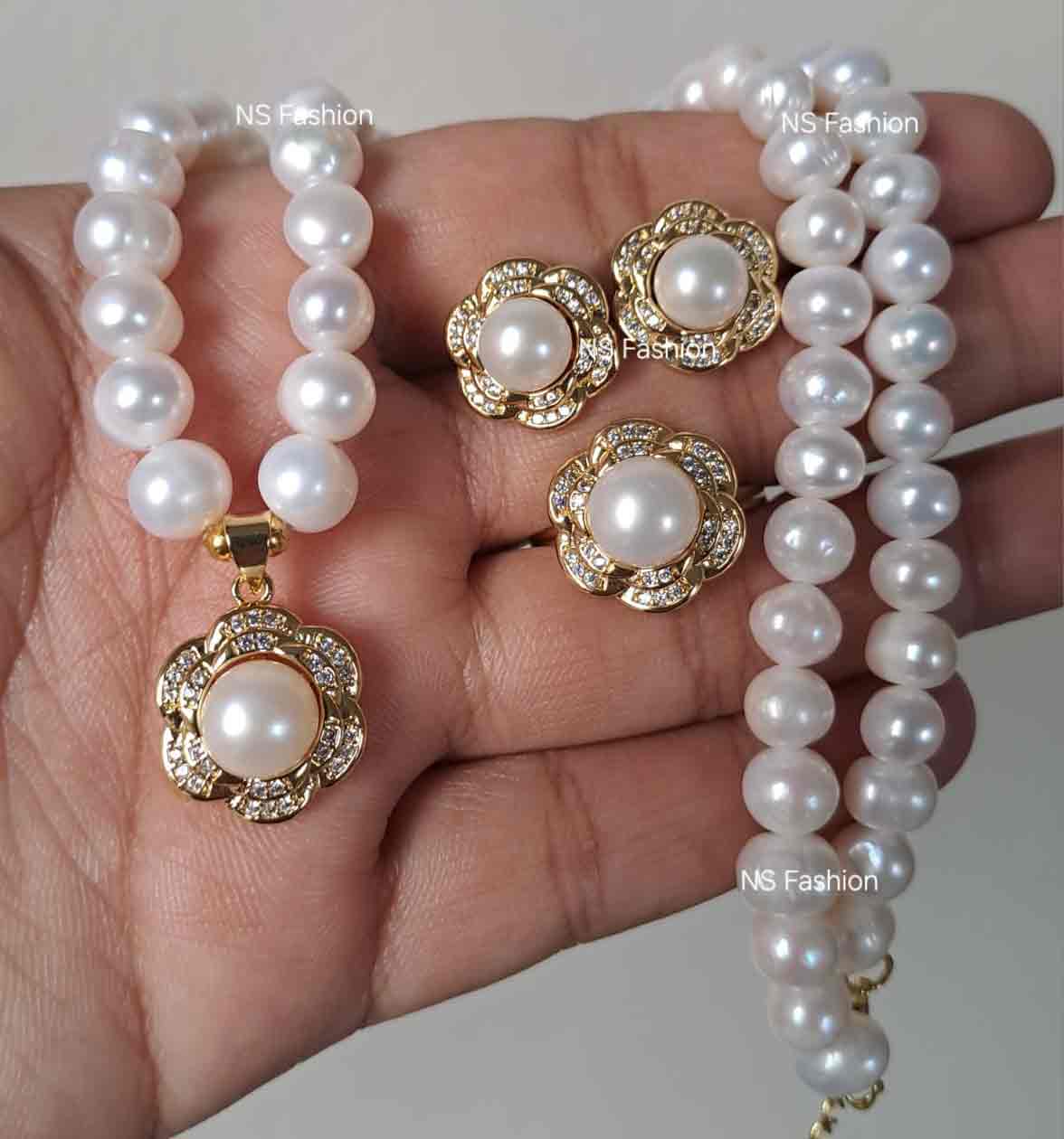 ✅ Timeless and elegant, this Freshwater Pearl necklace Set is the epitome of sophistication. Crafted with high-quality AAA-grade pearls, the set includes a beautifully designed necklace with a locket and matching earrings and an adjustable Finger ring, making it a perfect piece of jewelry for any Occasion, Celebrations, Gift-Giving, and daily elegance