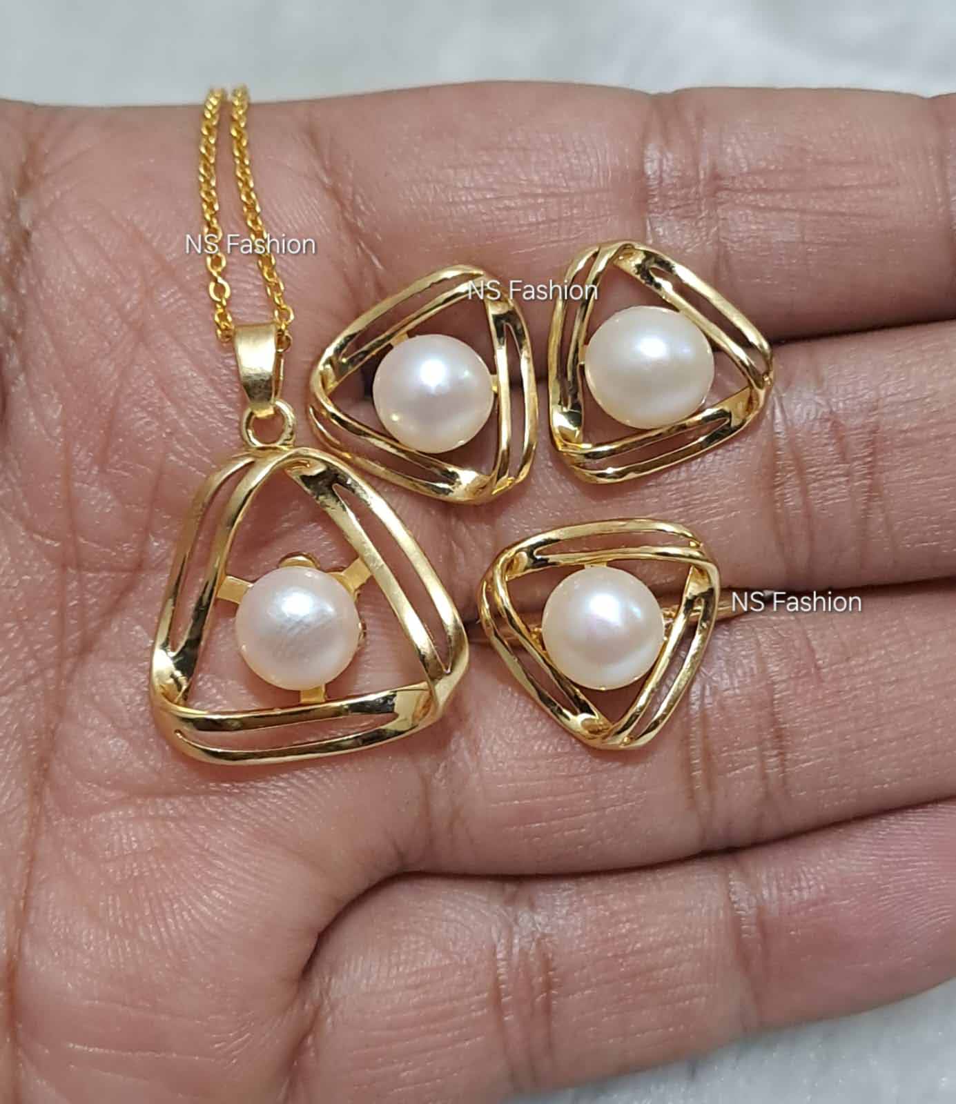 Tri-Angle Design Original Pearl Pendant Set